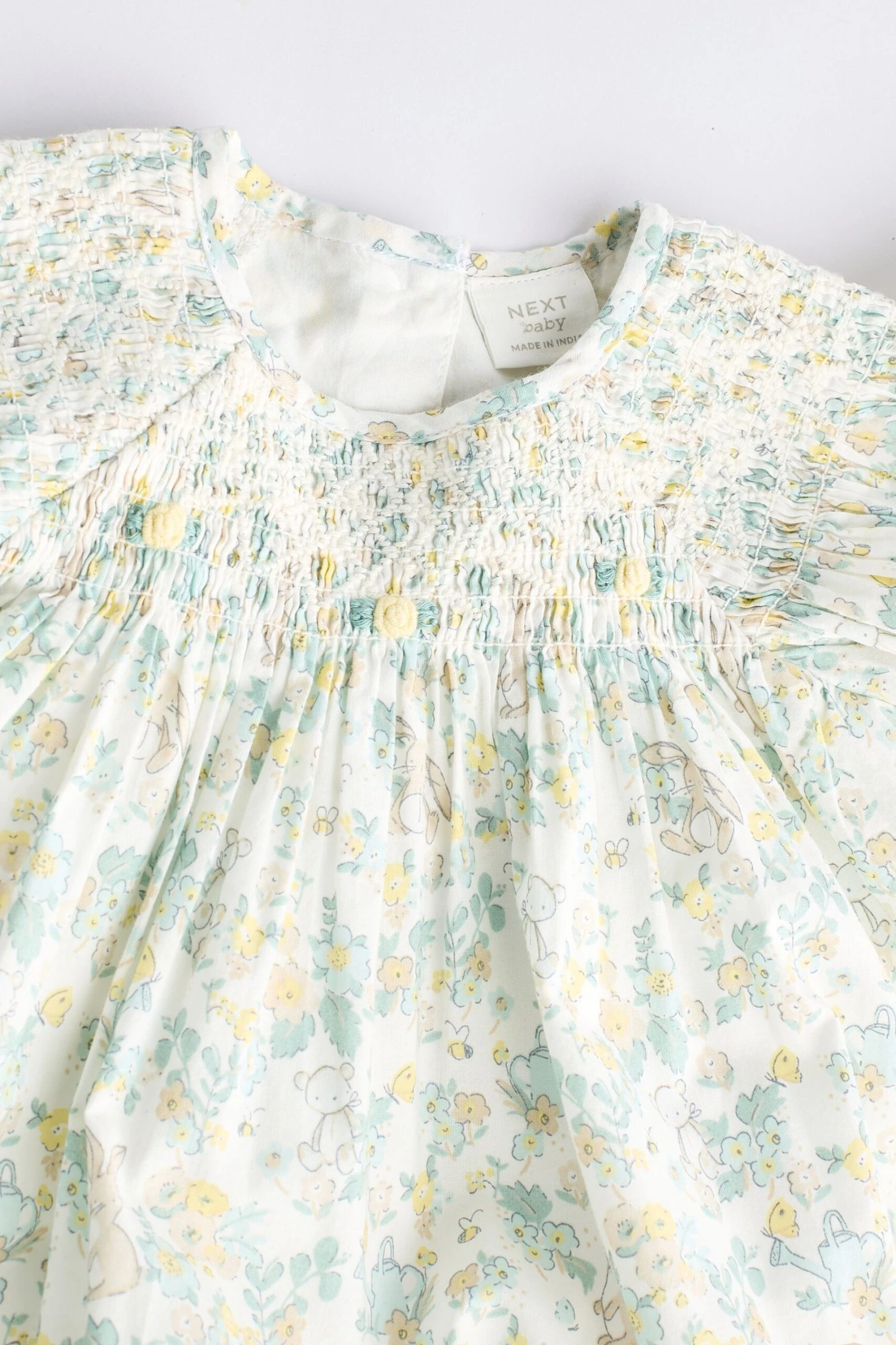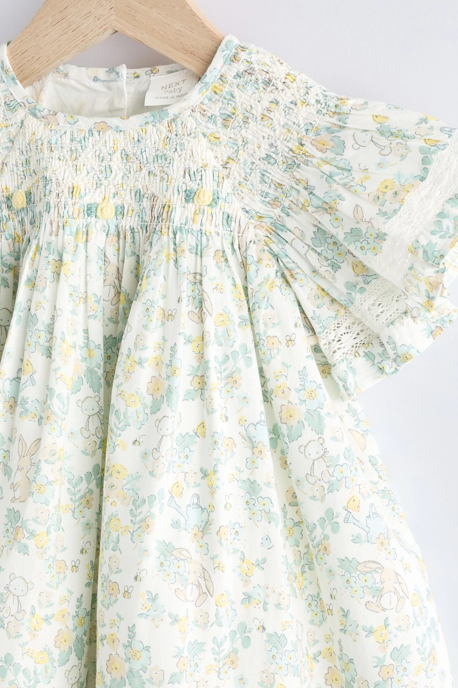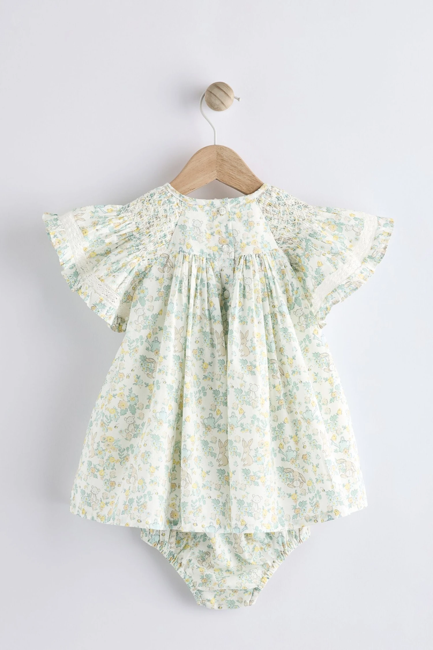 Kleid Obermaterial 100 % Baumwolle. Futter 100 % Baumwolle. Rüschen 100 % Polyester. Höschen 100 % Baumwolle.