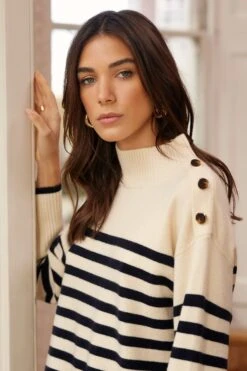 Love & Roses Gemütliches Strickkleid Mit Weiter Stehkragen Und Knopfleiste An Der Kleid